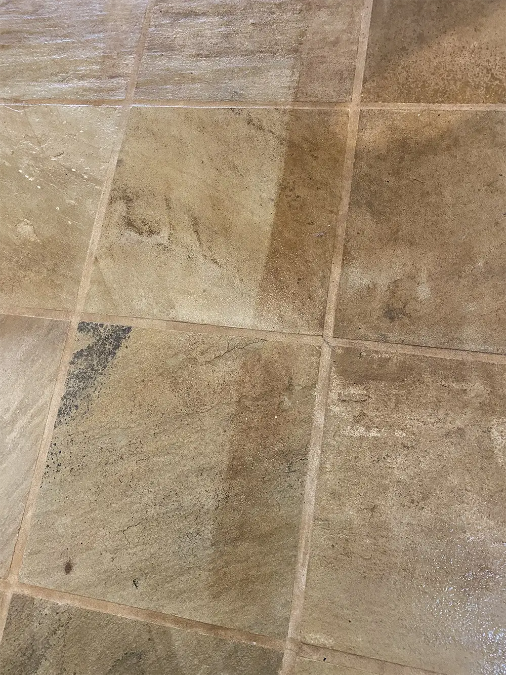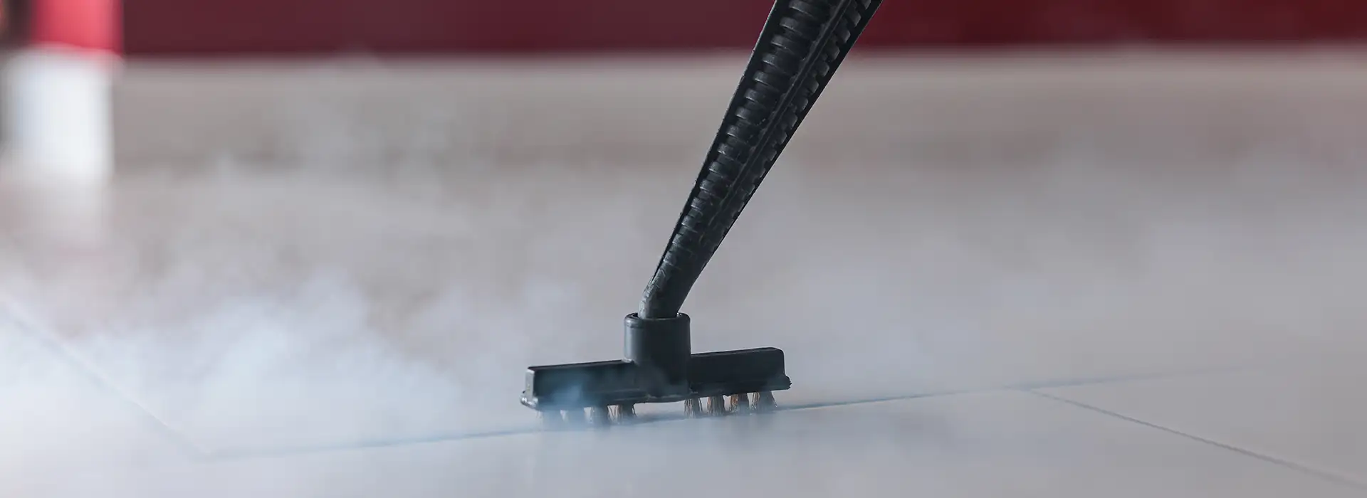- Steam Cleaning: We use 100% water steam at high temperature for effectively loosening and lifting dirt, grease and oil from the tiles and grout. This method is highly effective for removing deeply embedded grime and it is a complete chemical-free option absolutely perfect for families who are concerned about environmental impact. Finishing with our commercial steam mop to get a great outcome.